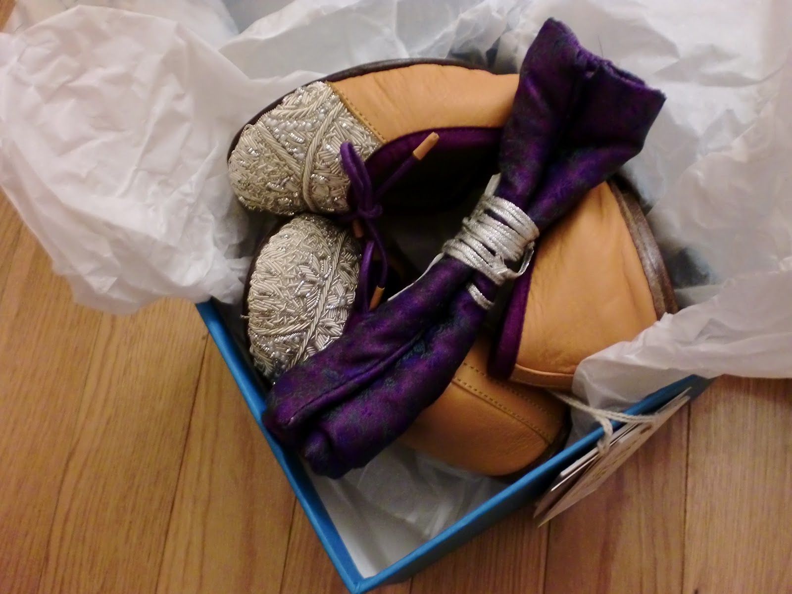 these are "ethnic" and "ethical."  i know.  i would roll my eyes too.  but they're just so cute and yellow and ornate.  can't help but love them.  and even came in bright blue box and matching pouch.