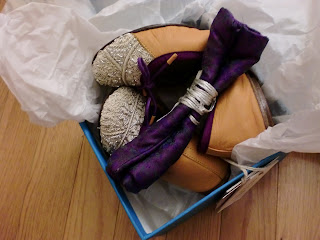 Vera Wang Lavendar Label Lisa flats in Gold.  These have been around a while, but they finally went on sale, allowing me to justify their purchase.  I love them.  They are even more glorious in person.  Right now they are hanging out in their little lavendar box, lovingly nestled in tissue paper, thinking warm thoughts.  Of course, I prance around my apartment in them every so often.  Have yet to choose an occasion for their debut.  We shall see.