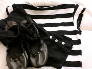 Here's a casual black and white combination, taking advantage of the stripes trend, which I have to say, I love. It's so loud and nautical!